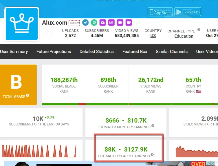 Next, is Alux which has over 4.5 million subscribers. Alux focuses on luxury such as ranking the most expensive items, luxury, and fine living. It's an informative channel but is also entertaining.